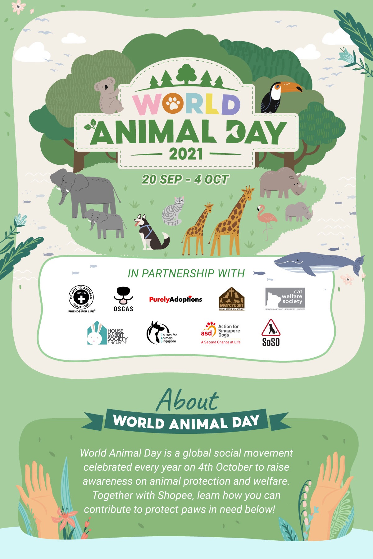 Every day should be a day to cherish our furry (and non-furry) friends, and even more so during World Animal Day! Celebrated internationally on 4 October, this year World Animal Day* seeks to raise awareness for animal welfare and protection with Shopee, from 20th September to 4th October.